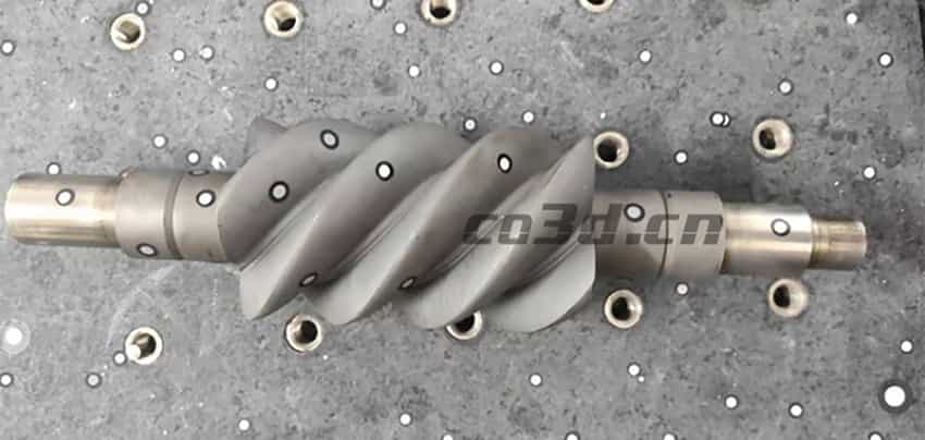 为了解决工件形成死角阴影问题,我司工程师使用手持式三维扫描仪A22。先是使用三维扫描仪A22快速扫描获取空气压缩机部件的三维数据,用时短,速度极快。且设备单机测量精度高,获取数据精度也高。然后用三维软件进行获取三维数据处理分析。