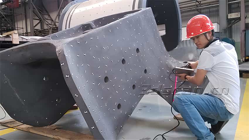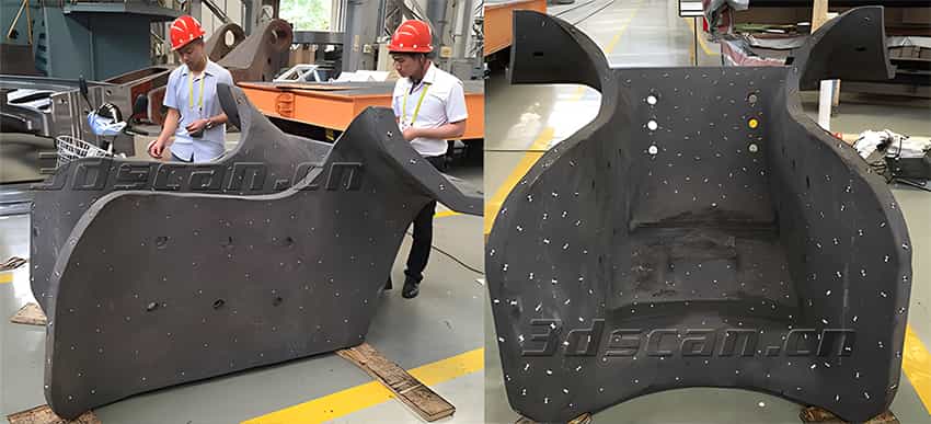 华朗三维技术工程师根据该企业面临的问题,提出的解决方案:使用手持式三维扫描仪HL-3DH-3M快速获取大型浇铸件的三维数据,利用逆向设计软件将浇铸件点云数据转换为三角网格面数据,配合三维检测软件迅速检测浇铸件(CAD) 模型和产品的制造件之间的差异,协助该企业进行浇铸件产品检测和改良。