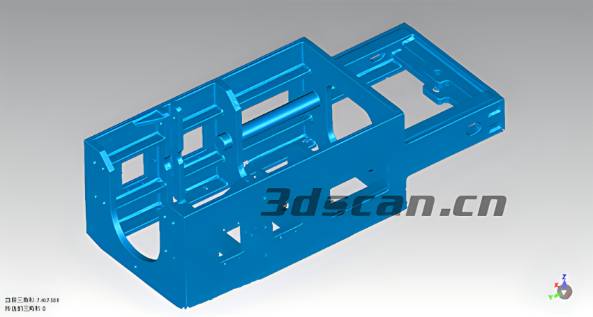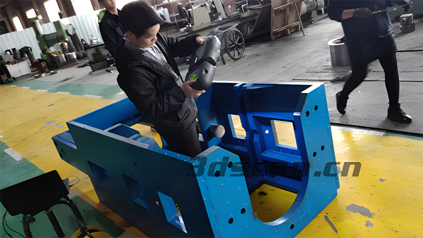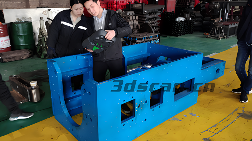 煤矿机部件外壳体积较大且笨重,表面轮廓不一,孔位死角较多,客户需对煤矿机部件外壳进行逆向修复,要求高数据精度以达到完美修复效果,采用传统的测量方法效率低且精度不高,不易对煤矿机部件外壳整体结构进行准确、快速测量,使后期逆向设计和建模修复增加难度,浪费过多的人力物力资源。